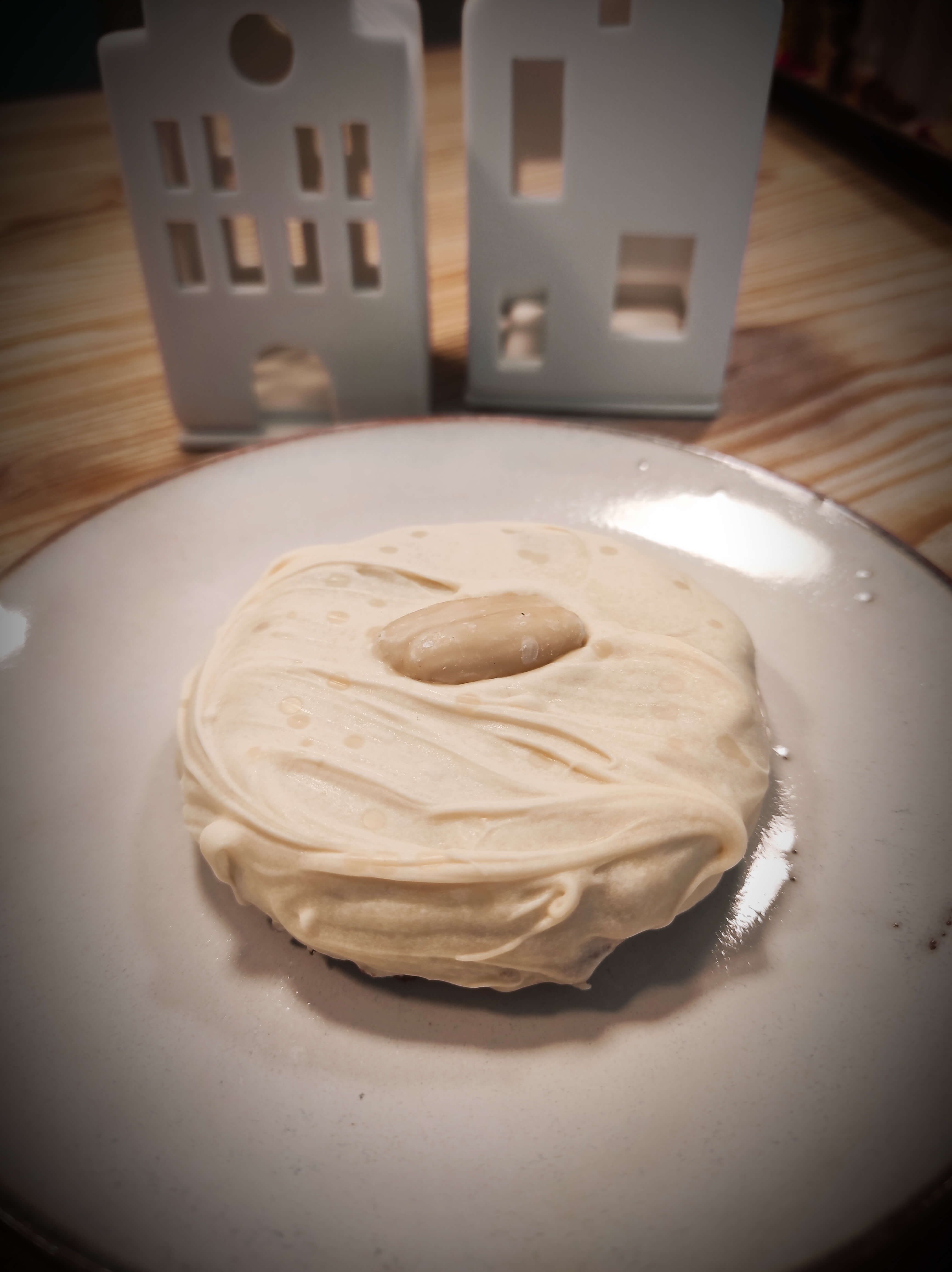 Mit weißer Schokolade glasiert und einer Mandel gekrönt